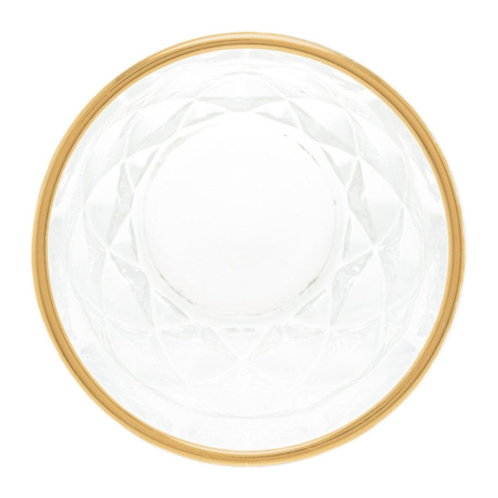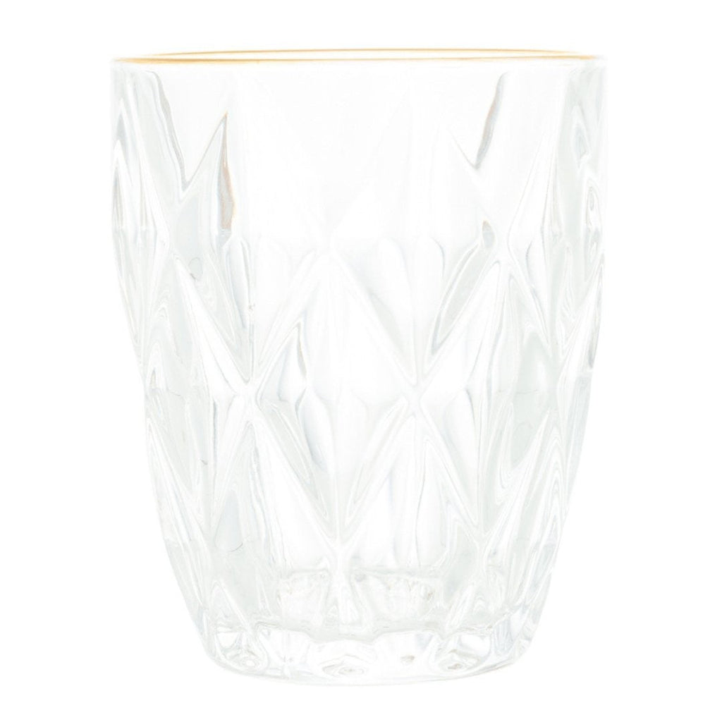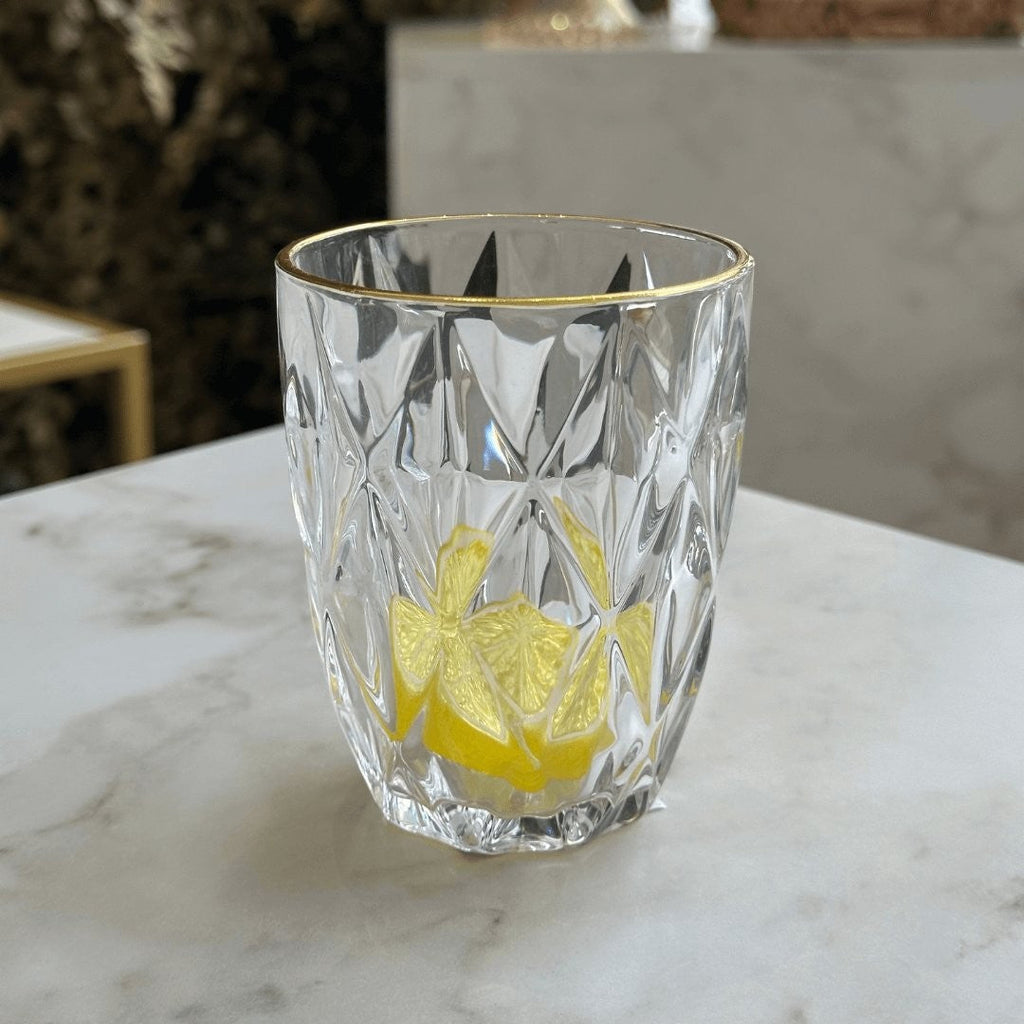 O Copo de Vidro com Fio de Ouro Diamond possui um design refinado e elegante que chama a atenção.