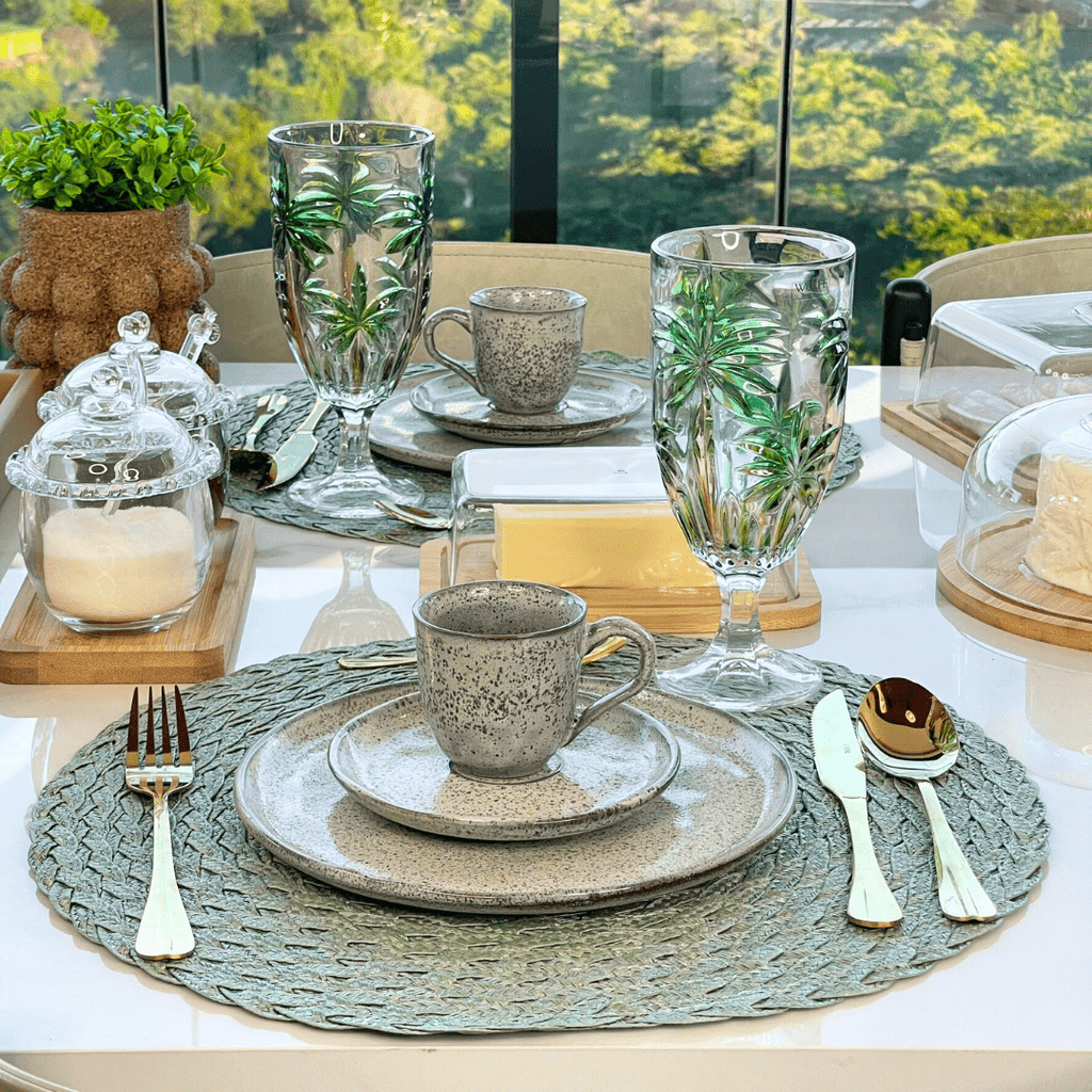 - Acompanha 06 facas, 06 garfos, 06 colheres e 06 colheres de sobremesa