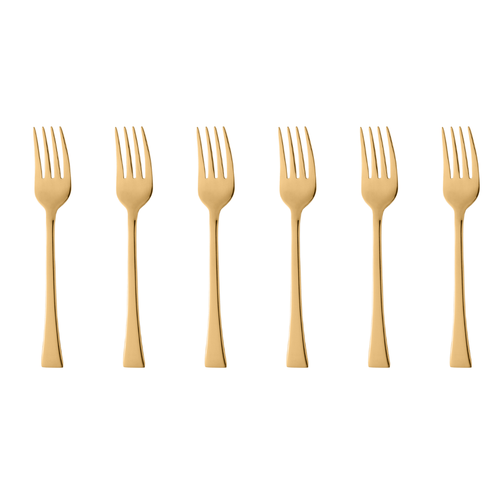 O Jogo de 6 Garfos para Sobremesa Berna em Aço Dourado é uma combinação de funcionalidade e elegância para completar sua mesa posta.