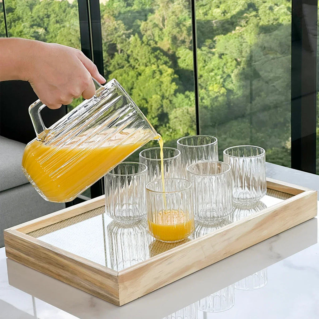 O Jogo de Jarra com 6 Copos de Cristal Bangkok de 7 peças é a escolha ideal para quem valoriza a arte de servir com elegância.