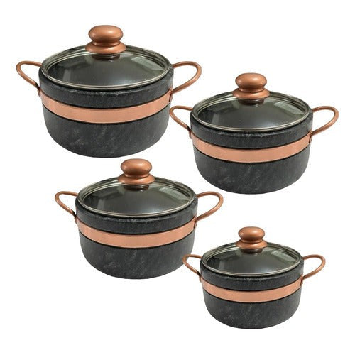 Jogo de Panelas de Pedra Sabão Tampa de Vidro 1,5 , 2, 3 e 4 Litros com Pegador Exclusivo