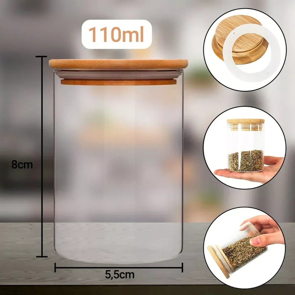 Kit Com 12 Potes Herméticos de Vidro 110ml