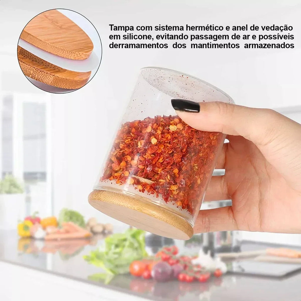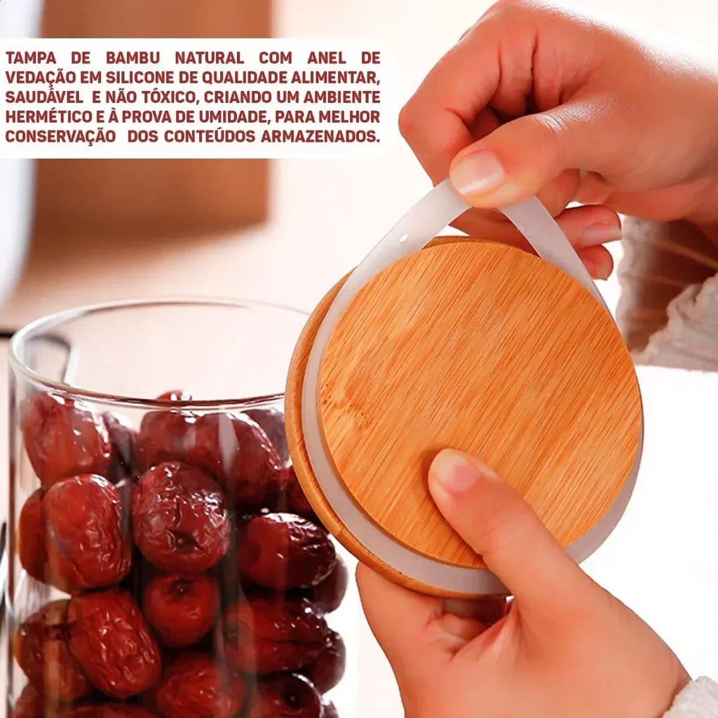 • Tipo de fechamento: Tampa de bambu com vedação hermética;