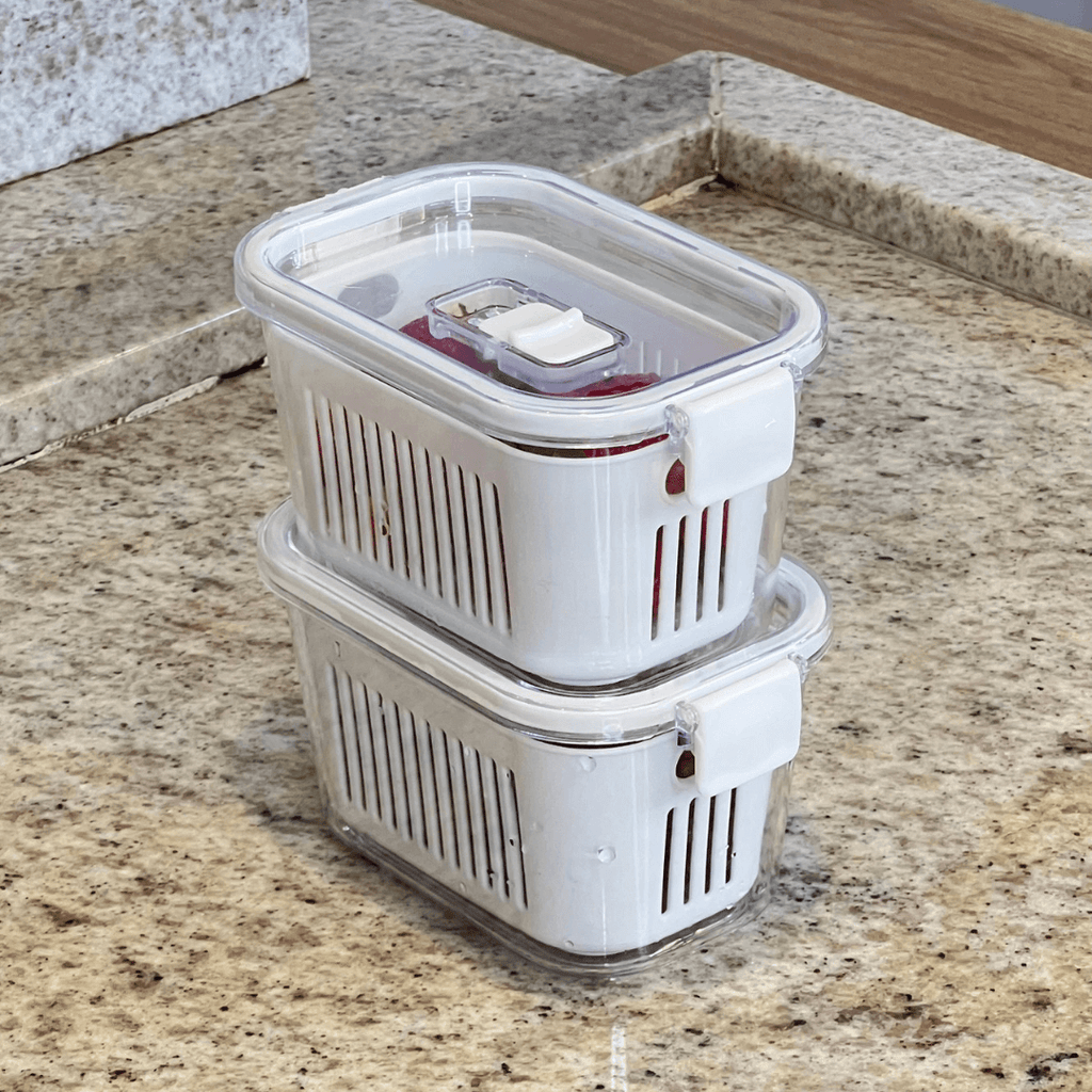 Possui um cesto escorredor que é possível remover para evitar que seus alimentos tenham contato com água dentro do recipiente.