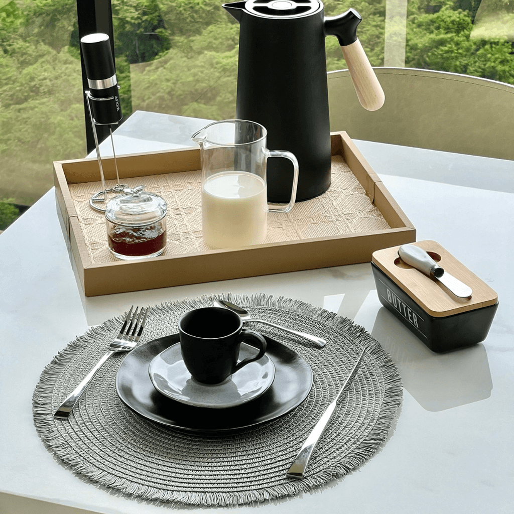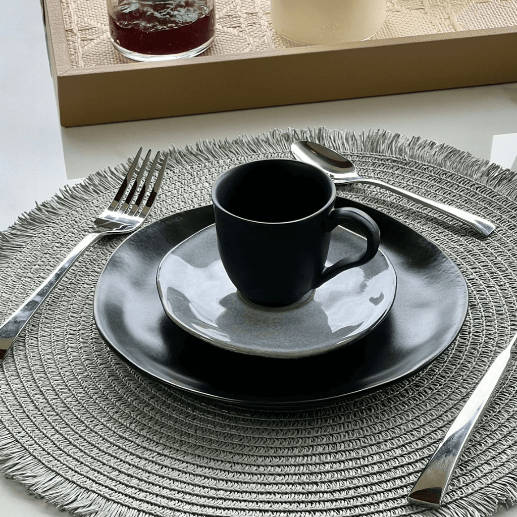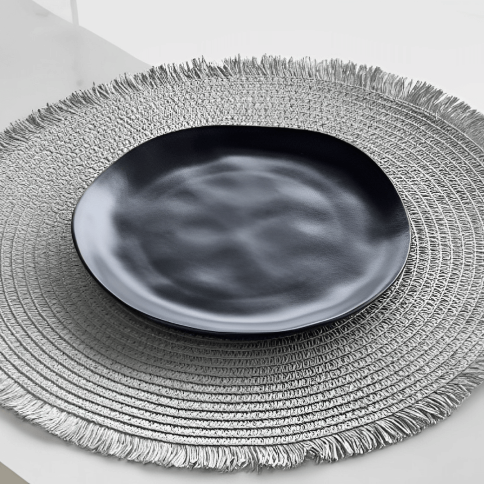 Este prato de sobremesa em cerâmica preto é feito organicamente, com 20cm de diâmetro. Ideal para servir sobremesas com elegância e consciência ambientalmente responsável. Resistente e durável, sem perder a sofisticação.